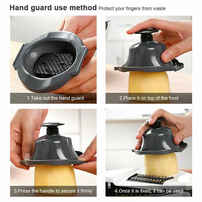 Οι λεπίδες είναι πολύ κοφτερές, οπότε να είστε προσεκτικοί κατά τη χρήση του κόφτη. Σας συμβουλεύουμε να χρησιμοποιείτε το προστατευτικό δακτύλων ή τη συμπεριλαμβανόμενη θήκη φρούτων και λαχανικών. Το VersatileColander δεν είναι κατάλληλο για κοπή κρέατος.