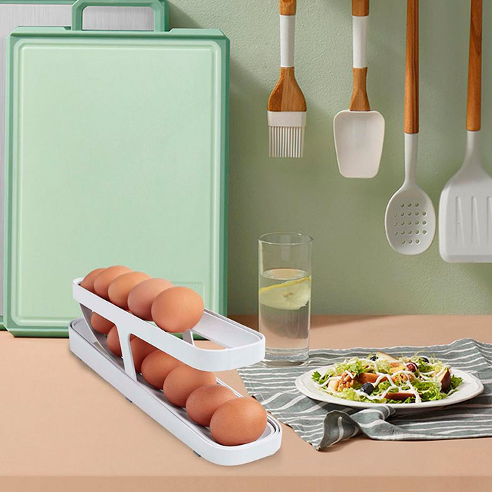Το δοχείο αυγών, θα σας επιτρέψει να εξοικονομήσετε χώρο στο ψυγείο σας, στον πάγκο ή στο ντουλάπι, καθώς είναι σχεδιασμένο να αποθηκεύει αυγά σε 2 επίπεδα! Όταν βγάζετε ένα αυγό από το ράφι, τα άλλα προχωρούν προς τα εμπρός, ώστε να τα φτάσετε πιο εύκολα την επόμενη φορά!