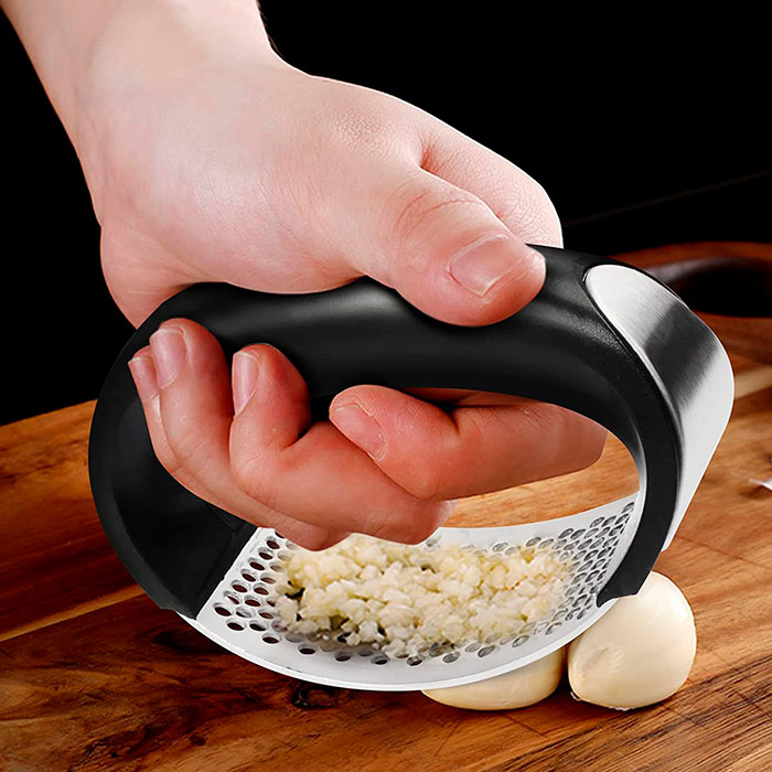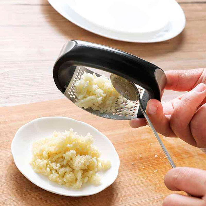 Μπορείτε εύκολα και γρήγορα να συνθλίψετε το σκόρδο ή το τζίντζερ. Απλώς βάλτε σκελίδα σκόρδου στην επιφάνεια εργασίας σας και μετακινήστε τον θραυστήρα μπρος-πίσω. Το σκόρδο διατηρεί τα πιο ενεργά συστατικά εάν το καταναλώσετε γρήγορα αφού το κόψετε.