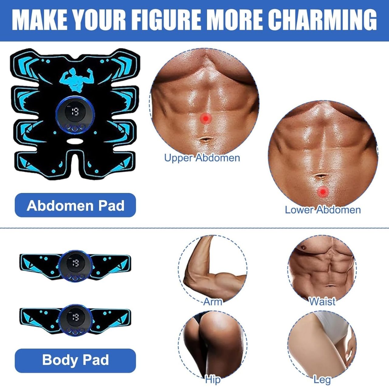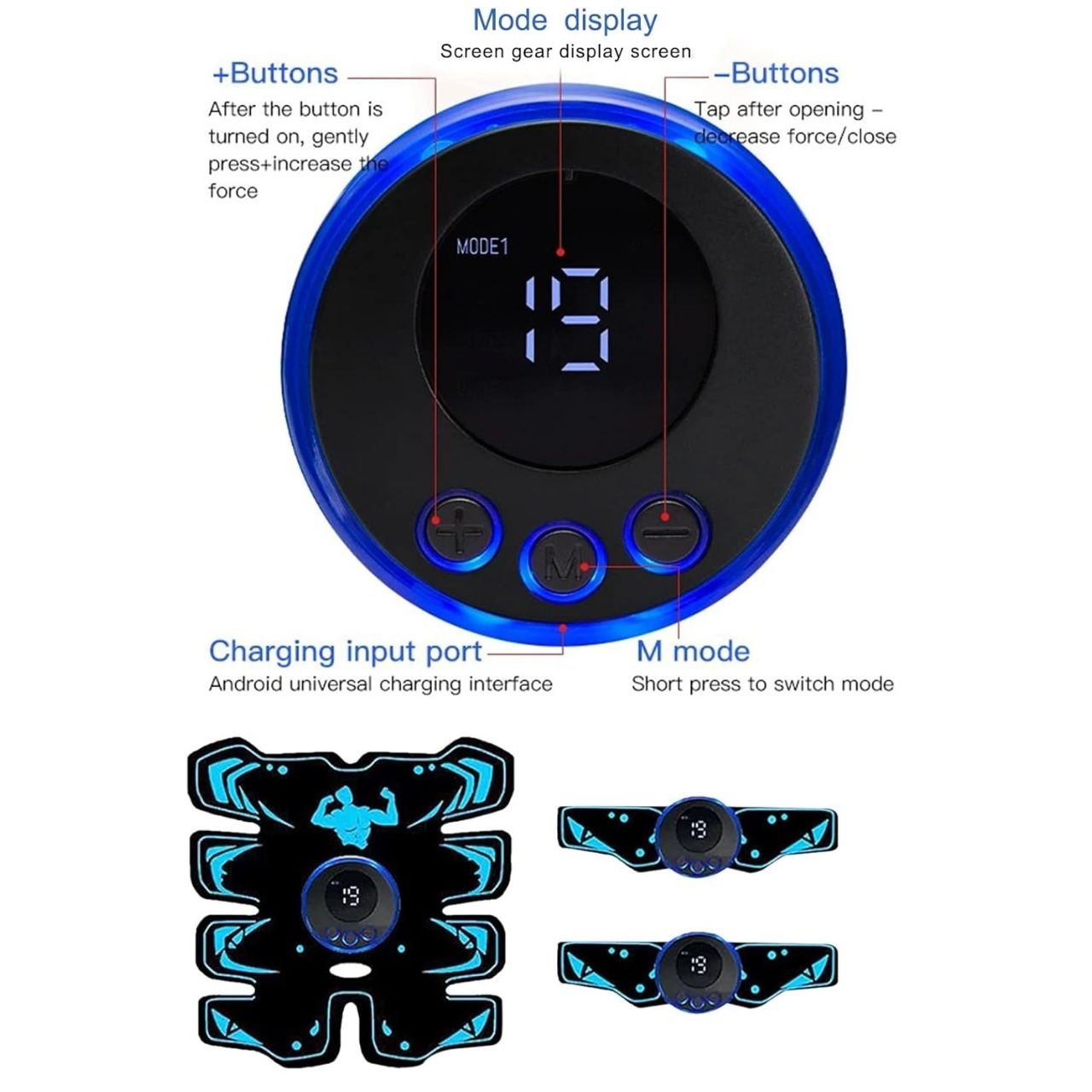 | Στη Συσκευασία: | 1x ηλεκτρικός διεγέρτης κοιλιακών μυών, 2x ηλεκτρικός διεγέρτης χεριών, 3x καλώδιο φόρτισης USB |