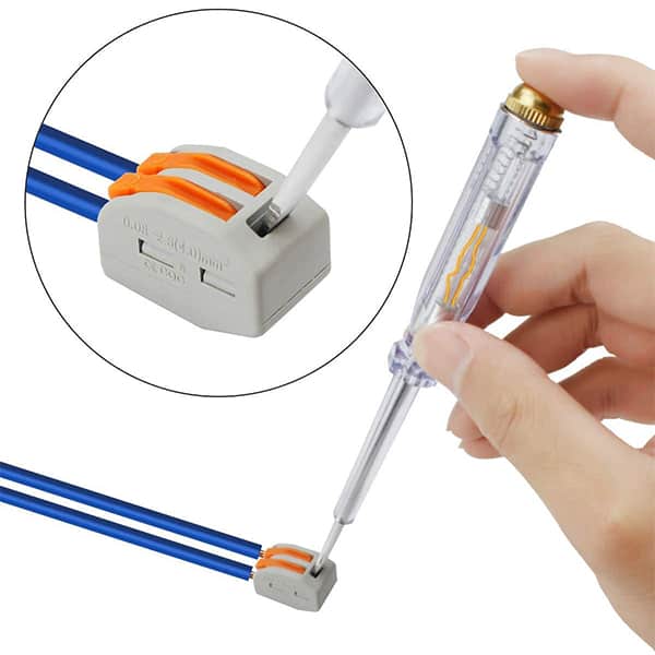Ακόμα χρησιμοποιείτε ηλεκτρική ταινία και επικίνδυνες συνδέσεις καλωδίων; Έχουμε έναν καλύτερο τρόπο για να κάνετε εύκολα ηλεκτρικές συνδέσεις! Ο διπλός συνδετήρας καλωδίων συνδέει καλώδια σε μια στιγμή! Απλά εισάγετε το καλώδιο και κλειδώστε το για να το ασφαλίσετε!